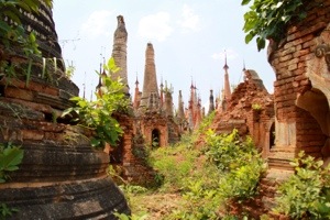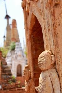 Finalement, j’avais demandé à visiter une ancienne ville qui s’appelle Inthein, qui est connue pour ses quelques 1500 stupas (les trucs qui ressemblent à des Kisses de Hershey géants) abandonnées. Ce sont des mini-temples si vous voulez, et même principe que Bagan, quelques rois de suite se sont dit que ce serait bien d’en entassr un paquet dans le même espace. L’effet est stupéfiant! Je me sentais comme Indiana Jones à me promener au travers des ruines…;-)