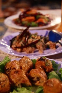 Deuxième point intéressant de ta journée me semble être la photo des plats que tu as dégustés. Moi qui ne connaissait que le saumon fumé et les rouleaux du printemps sur un nid de salade. Je vois que les Birmans y présentent presque tous leurs plats.