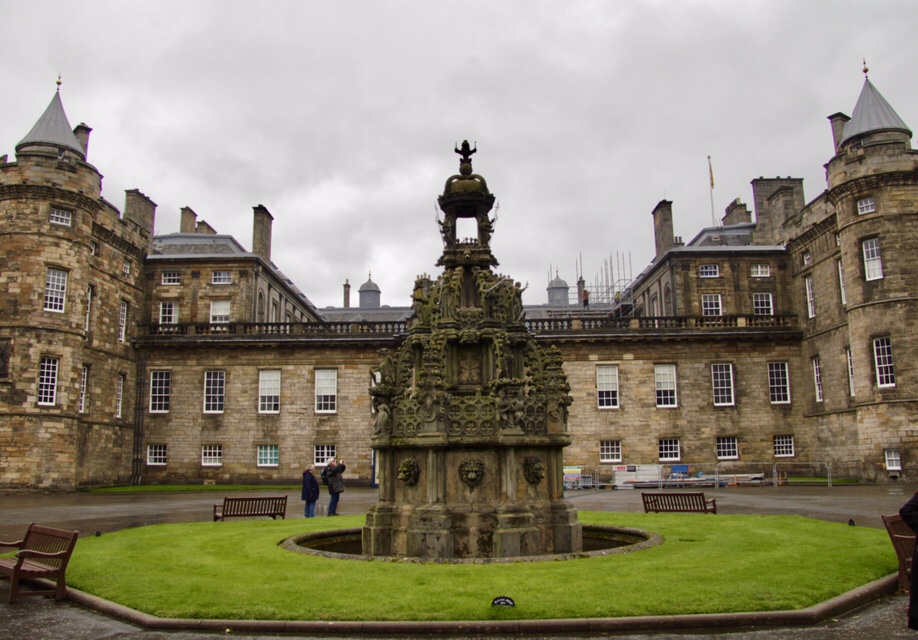 Voici quelques photos d’hier et d’aujourd’hui, où j’ai visité un autre château, celui de Holyrood, endroit où la Reine habite lorsqu’elle séjourne à Edinburgh. Celui là, moins précairement situé (meaning pas sur le bord d’une falaise de 250 pieds) était ouvert. Il contient entre autre une collection d’argenterie de 3000 morceaux, qui prend 6 mois à polir au complet à la main. Prière de me le rappeler la prochaine fois que je chiale que c’est long faire la vaisselle!! 😉